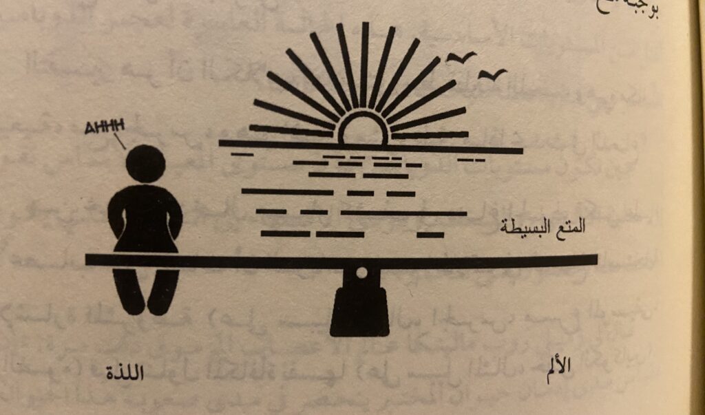 لكن السعي وراء الالم اصعب من السعي وراء اللذة. وهو يتعارض مع رد فعلنا الفطري لتجنب الالم والسعي وراء اللذة. انه يضيف الى حمولتنا المعرفية. ما يجب فهمه، علينا ان نتذكر اننا سنشعر بالسعادة بعد الالم، في حين اننا نتغافل وننسى هذه الحقيقة، اذن يجب علي اعادة تعلم دروس الالم كل صباح، حيث اجبر نفسي على النهوض من السرير والذهاب الى ممارسة الرياضة.